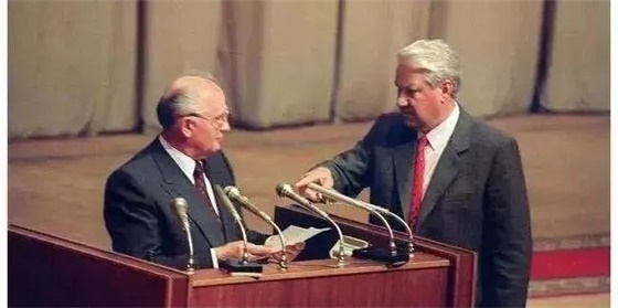 这张历史性的照片拍摄于1991年的8月23日,叶利钦当着在场所有人的面,用着近乎命令似的语气要求戈尔巴乔夫照着稿子发表演讲,这一瞬间被在场媒体记者拍了下来,成为了苏联解体标志性的一幕。当戈尔巴乔夫念完后,他恍恍惚惚的走下了台,仿佛丢了魂似的。