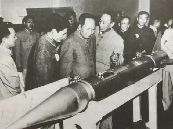 ▲毛泽东参观我国第一枚探空火箭“T-7M”(图片来源:中国科学院自然科学史研究所)