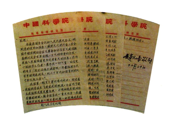赵九章给周恩来总理的一封亲笔信