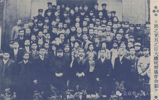 1912年元旦,孙中山与黎元洪、汪精卫(前排左三)等人合影