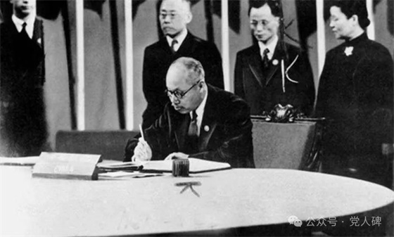 1945年4月,中国代表团董必武,在《联合国宪章》上签字