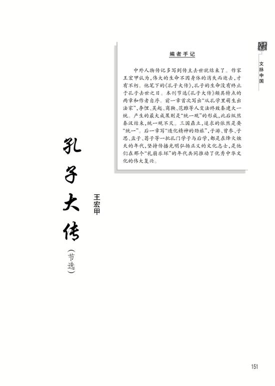 我于是看到,一个伟大的生命,不因身体的消失而逝去,才有不朽。那不朽的生命产生的影响,比他生前的更加远大。一部传记若只写到他去世之时,就没有准确地写出他不朽的生命。所以,这部《孔子大传》,孔子的生命没有终止于孔子去世之日,而是继续活在中国社会,直到当今。