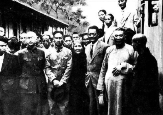 1938年,蚁光炎(前排左五)陪同黄兴夫人(前排左四)到泰国各地宣传抗日。