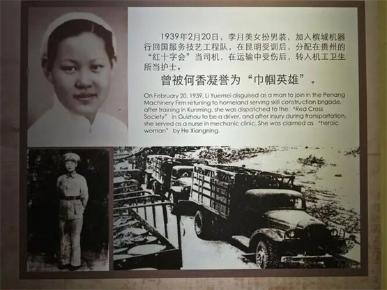 李月美是一名马来西亚华侨,得知南侨总会招募机工,她毅然报名应征,却因性别原因被拒。为了实现报国理想,李月美女扮男装、剪发从军。因为她个子高,长得壮,性格也泼辣,竟没人发觉她是个姑娘,直至因车祸负伤才被发现是女儿身。
