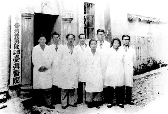 台籍医生在浙江金华酒坊巷的台湾义勇队附设医院前合影。