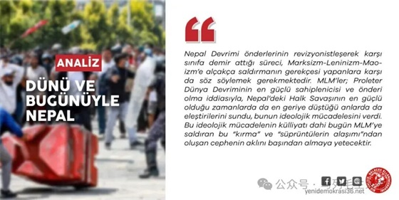 也有必要对那些以尼泊尔革命领导人堕落为修正主义者、依附于对立阶级的过程为借口,恶意攻击马克思列宁毛主义(MLM)的人说几句。马列毛主义的战士们,自诩为无产阶级世界革命最坚定的旗手与领导者,在尼泊尔人民战争最强盛与最低谷的时刻都提出了批评,并为此进行了意识形态斗争。即使这一意识形态斗争的全部文献,也足以让今天那些由“混血儿”和“垃圾合金”组成的、攻击马列毛主义的阵营目瞪口呆。世界范围内的毛主义者深知:在帝国主义与无产阶级革命的时代,新民主主义革命、社会主义与共产主义的事业,将在胜利与挫折中前进,而这些经验将强化无产阶级革命的斗争。他们知道、捍卫并阐释:坚持到底的彻底革命主义,需要持续斗争。无产阶级世界革命并非没有主人。将我们当前所处的进程扳回正轨,尽管困难重重,但终将可能,也必将可能。(来源:土耳其《新民主报》2025年9月25日,原标题为《尼泊尔,往昔与今朝》; https://www.yenidemokrasi36.net/nepal-past-and-present/ https://www.yenidemokrasi36.net/dunu-ve-bugunuyle-nepal/ )