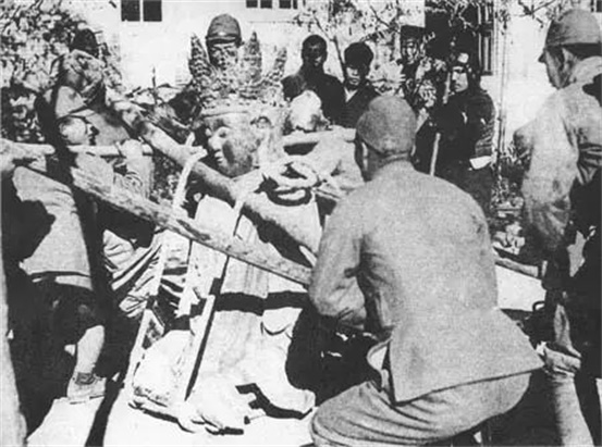 ◆中国的文物事业在战争中遭受严重损失。图为日军正在抢掠中国文物。