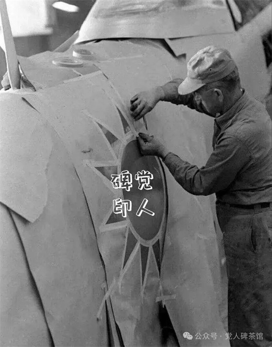 美国机修工正为援助国民党空军的野马战斗机喷上机徽。