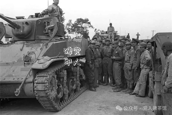 美国人装备训练的国民党军坦克部队(前排左1为蒋纬国)。