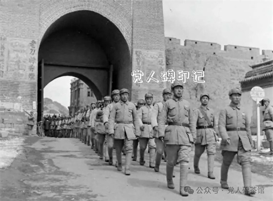 1946年4月,张家口,我军列队通过大境门。(美)拉克斯 摄