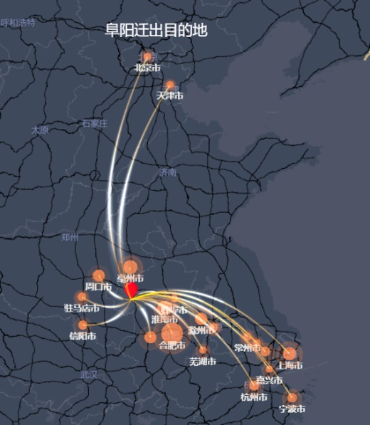而与之相对应的作为人口虹吸对象,类似安徽北部城市阜阳他的人口迁出目的地,有省会合肥、江苏南京、再是北京、上海