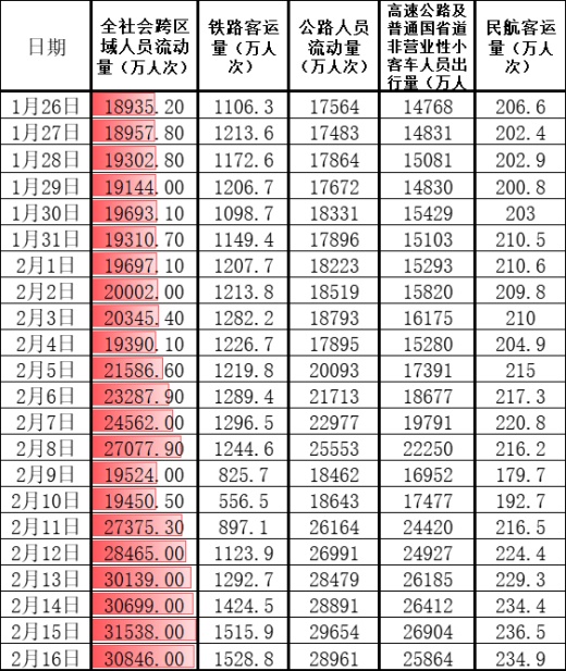 今年也不例外,截至发稿前最新发布的2月16日数据,春运前22天的详细数据已经出炉