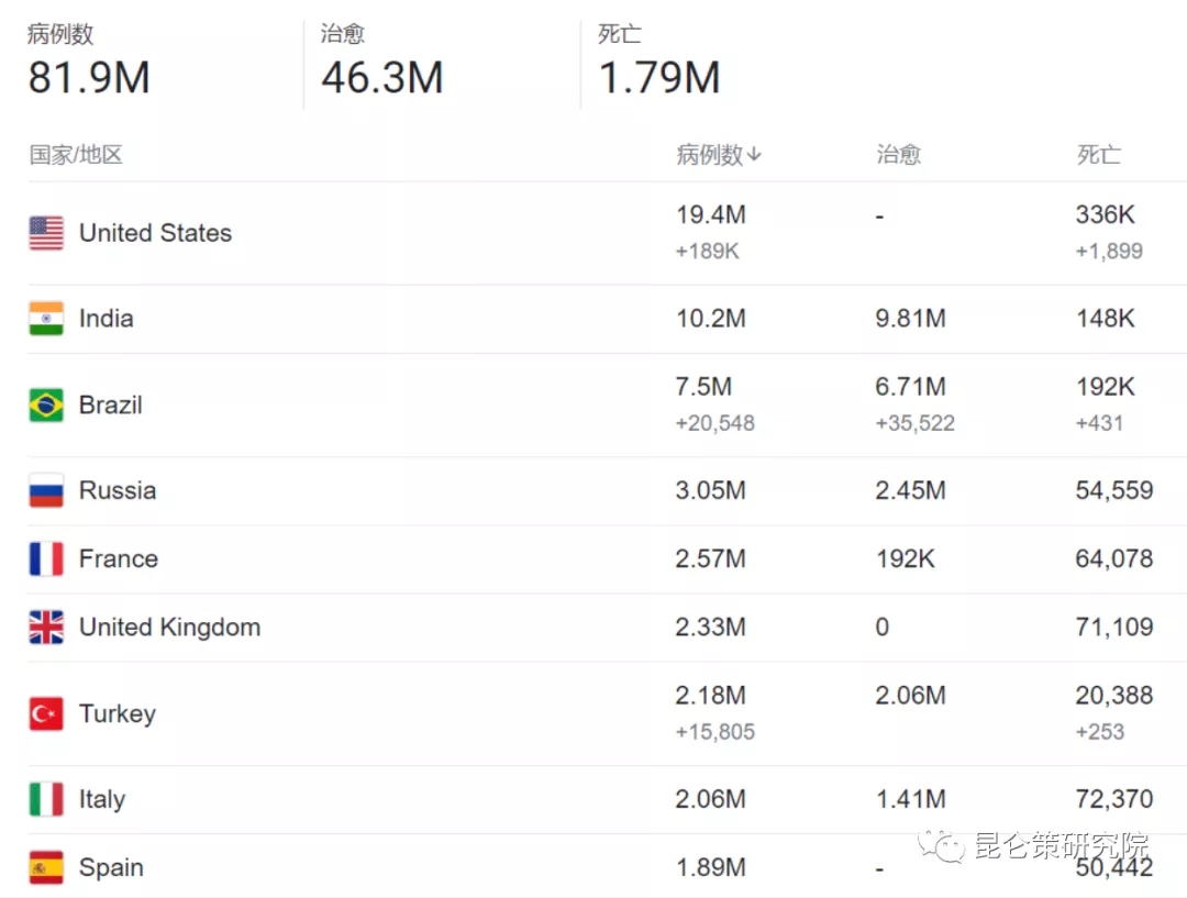 【2020年12月29日各大国的疫情状况 来源:维基百科】