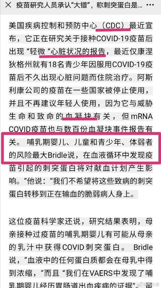 (“我们犯了大错误”——新冠 疫苗刺突蛋白从注射部位传播能导致器官损伤)