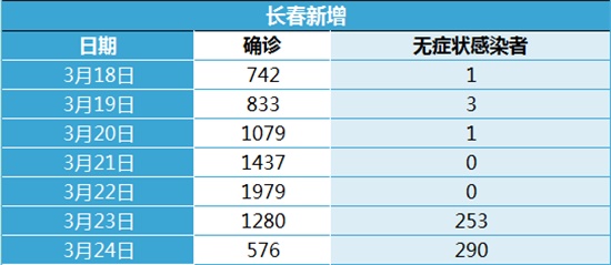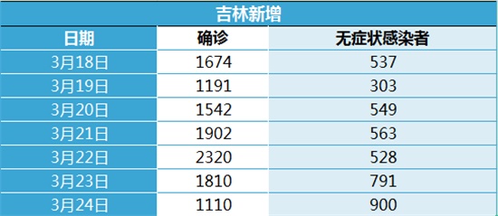 吉林省内的疫*情最严重的是长春市和吉林市,我们再仔细一点观察,会发现,长春市在通报本土新增时,“新增本土确诊病例”和“新增本土无症状感染者”在最近一周有明显的变化。在3月22日之前,长春市通报的“新增本土无症状感染者”接近于0,3月23日和3月24日的数据一下就变了。