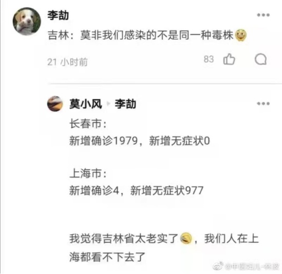 还有网友代入“吉林”的身份发出困惑:莫非我们感染的不是同一种毒株?