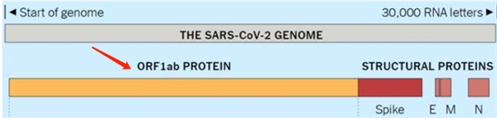 ORF1ab^VVVNASN具体来说,就是在新冠病毒的ORF1ab蛋白结构的1061位点上出现了丙氨酸替换为丝氨酸的突变。ORF1ab是指16个蛋白链条。被SARS-CoV-2感染的细胞内部产生的第一个病毒蛋白实际上是16种蛋白质结合在一起的蛋白链。其中的2两种蛋白像剪刀一样把蛋白从蛋白链上释放出来。