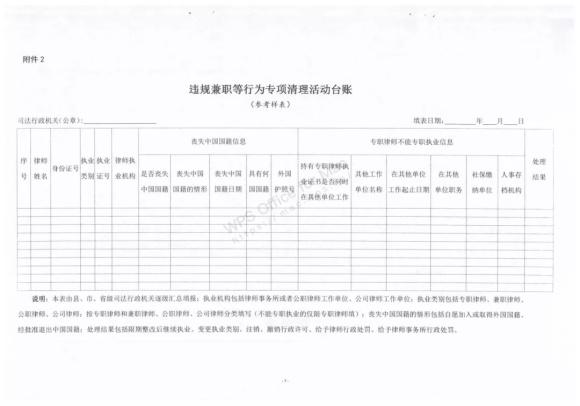 2.在专项清理活动期间不主动、如实报告有关情况或者拒不整改、无法整改,属于在申请律师执业许可时已经丧失中国国籍,申请人通过提交虚假材料或隐瞒真实情况获取执业许可的,依法撤销准予其律师执业的决定并收回、注销其律师执业证书;属于在司法行政机关准予其律师执业后出现违规兼职或者丧失中国国籍情形的,依法收回、注销其律师执业证书。