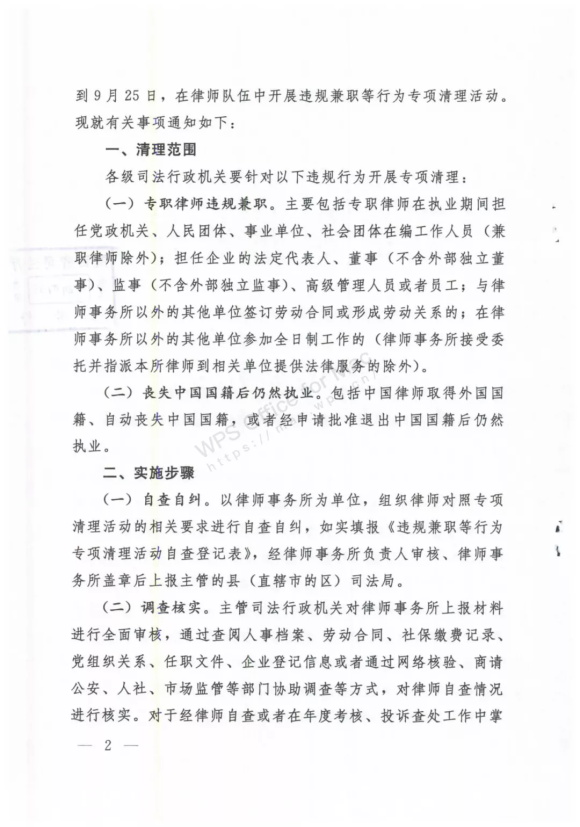 为以案明鉴,举一反三,进一步加强律师管理工作,司法部决定自2020年6月25日到9月25日,在律师队伍中开展违规兼职等行为专项清理活动。现就有关事项通知如下: