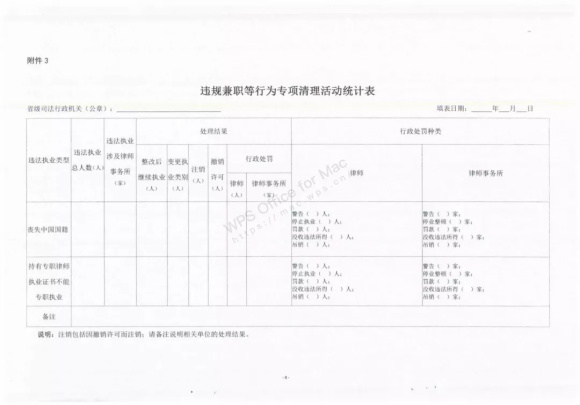 开展专项清理活动是加强律师队伍建设和律师管理工作、纯洁律师队伍、促进律师事业健康发展的重要举措。各级司法行政机关要高度重视,进一步提高政治站位,精心组织,狠抓落实,不走过场,确保各项措施落地见效。要积极争取公安、人社、市场监管等部门的支持与配合,确保专项清理活动扎实推进。要加强对专项清理活动的跟踪指导,及时研究解决遇到的困难和问题。要注意方式方法,深入细致地做好广大律师的思想引导工作。要做好舆情监测和舆论引导工作,避免引发负面舆情。请各地将此次专项清理活动的经验做法、主要成效、存在的问题及原因、工作建议等形成书面总结连同《违规兼职等行为专项清理活动统计表》,于2020年9月30日前报送司法部律师工作局(电子版发送至:[email protected])。