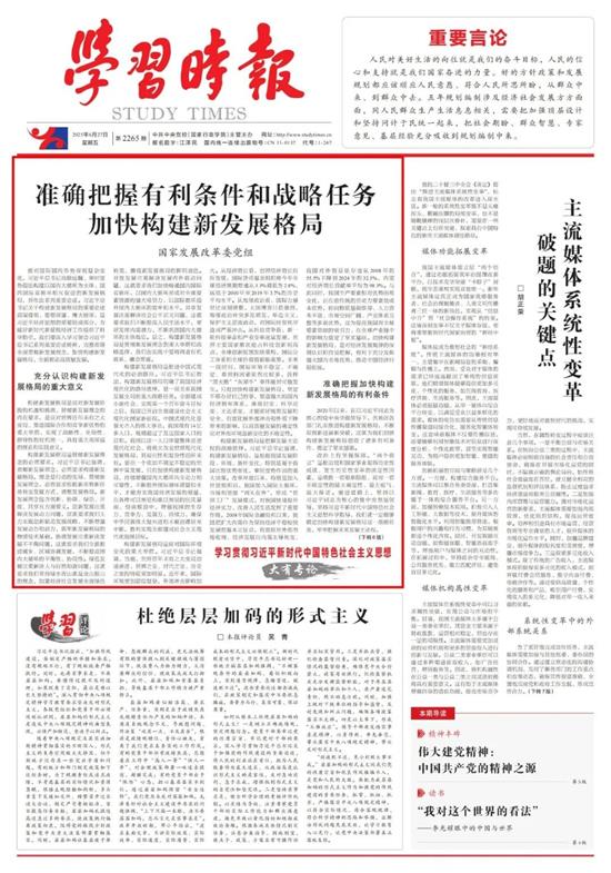 6月27日,国家发展改革委党组在《学习时报》头版头条刊发署名文章《准确把握有利条件和战略任务 加快构建新发展格局》。