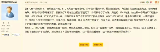 装ETC有一段时间了,但从元旦开始,ETC下高速不显示费用,APP也不推送详单,更没短信提示。有关部门说是现在跑高速,费用有涨有跌,请问宁波那条高速涨了,那段跌了?现在连价格都不透明了!昨天我想尽了办法,只能打12345电话,她给我一个高速ETC的服务电话:88236264,打了10多次没人接,我自己网上查了个宁波市ETC服务点电话:0547-88234992,这个电话更厉害,一直在通话中,我晚上8.30下班回家时打,也是占线。我不信鬼,晚上12点终于打通了,但没人接。电话真的有这样忙吗?我可是打了几十遍!你们的模样真的很像过年前的老赖,连电话都不接!