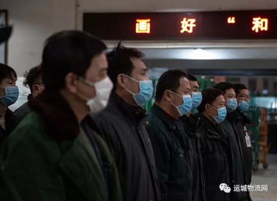 2月1日,武汉邮区中心局,上夜班的工作人员集合。这里目前24小时运转,夜间也要处理数千件邮件。中青报·中青网记者 李峥苨/摄