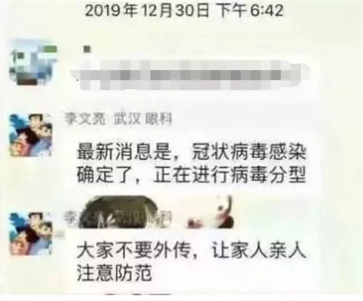 李医生作为一个眼科医生,是通过“看到一份检测报告”得知了这个消息,然后在自己的班级群里提醒了自己的同学同事,提醒他们注意防护,注意家人的防护,并且强调了“不要外传”,我们可以说李医生帮到了很多人,但真正帮助一些人提前购买口罩的,是那个群里将聊天截图传到网络上的“某同学”。