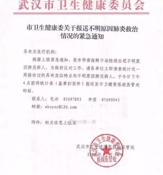 注意,这个通知不是加密文件,没有密级,就是普通流转公文,武汉各医疗机构均有条件接触到这个文件。当天,李文亮医生等八人在微信群中发布“海鲜市场确诊七例sars”,其实就是来自各自医疗机构的公文。这个时候,他们并没有接触到第一手的病人、病情,只是根据公文做出的推测。而这个公文,其实就是来自最早张继先医生的报告。