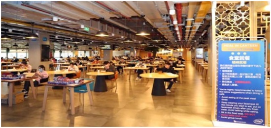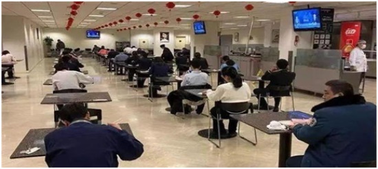 四川成都两家企业一人一桌相隔一米吃饭,员工笑称吃出了高考感觉。