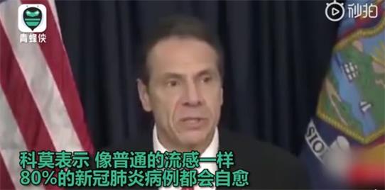 某国纽约州州长在新闻发布会上公然声称新冠肺炎“80%都能自愈,就像得感冒一样,没必要去医院……”难道是谣言?