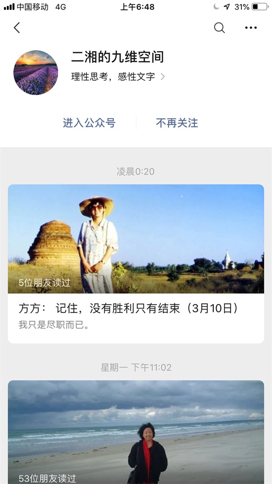 在美国《侨报》眼中,二湘是一个多才多艺的女人。正因如此方方的《武汉封城日记》发在二湘的六维空间公众号无可厚非。