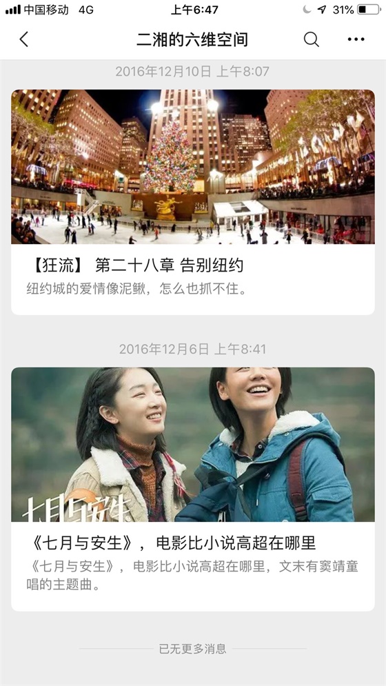 要知道二湘是2016年底开的刘维空间公众号,2年以后她在自己公众号上写完2本连载小说,立马就获得成都市文联《青年作家》杂志第三届华语作家奖。