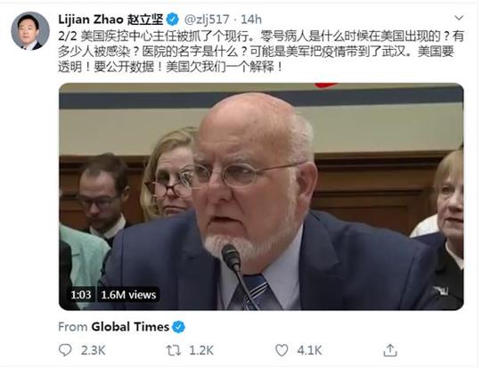 加拿大智库“全球研究”(Global Research) 3月4日在其网站上发表了署名拉里·罗曼诺夫的文章:China’s Coronavirus: A Shocking Update. Did The Virus Originate in the US? (中国的冠状病毒:最新发现令人震惊,该病毒起源于美国吗?)