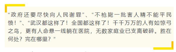 ——大肆渲染抗疫的开始摸索阶段和方方面面的磨合阶段有人的日子多么凄惨,多么痛苦,无非一个意思:你扬起灰了,砸到我的脑袋了,太可恶了。