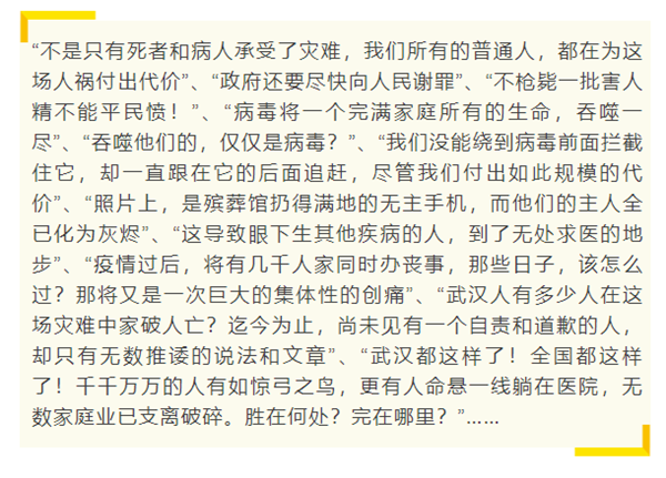 方方日记最核心的一条,就是咬定这次新冠病毒不是天灾而是“人祸”,一切都是中国政府的责任——不是失误,而是“罪责”:
