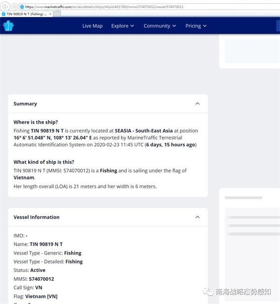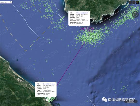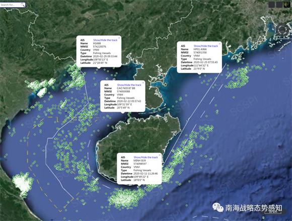 “南海战略态势感知计划”(SCSPI)于2020年1月启动越南渔船跟踪监视项目,旨在通过数据澄清相关细节,并让更多的国内外专家学者和社会大众了解越南渔船侵略中国海域的这一严重事态。该项目依托“船舶自动识别系统”(Automatic Identification System,简称AIS)的商业数据,并在其基础上进行数据的二次挖掘和整理,定期发布越南渔船在海南岛等海域的态势报告。