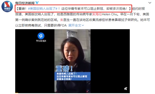 消息曝光后,朱海伦医生也就成为了美国疫情的“吹哨人”。