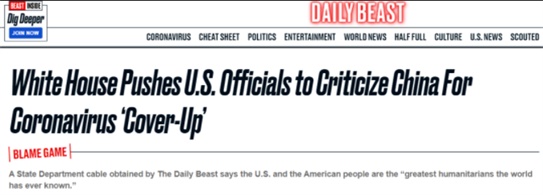 在疫情爆发的关键时刻,从总统到国务卿,都还不忘继续甩锅污蔑,时时刻刻都要来一上句“中国病毒”。
