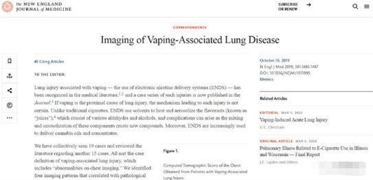 而且,类脂肺炎症状与电子烟肺炎不同,类脂肺炎入院时就会出现胸部的影像学异常,而不会在病程发展过程中最终出现。