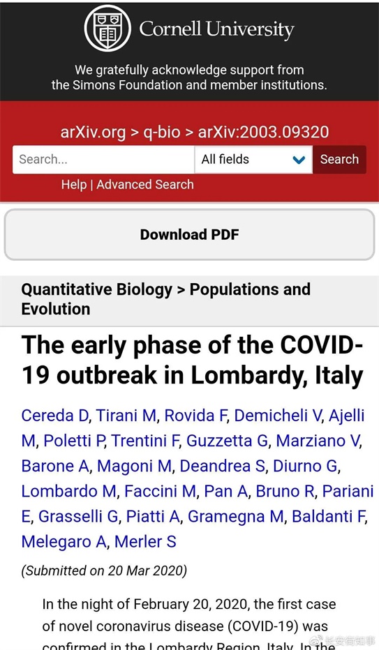 在伦巴第大区卫生局协调下,14家研究中心将他们联合完成的研究报告发表在学术论文平台ArXiv上。