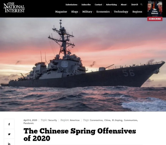 有一家著名的美国媒体详细分析了“中国是否会乘美军爆发疫情之机攻打台湾”这个问题——《国家利益杂志》。