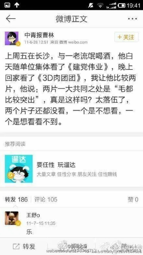 都是他三观和他比较接近或他认可的人。看看曹林多么讲立场。