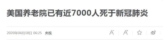 在美国,养老院成了疫情的重灾区,根据统计,目前美国养老院已经有近7000人死于新冠肺炎,占据了死亡病例总数的五分之一!