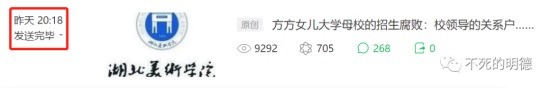 鉴于你死不悔改,我顺着你提到的线索,一步步扒到你女儿的母校——湖北美术学院,触目惊心的招生腐败,说老实话,即便这个时候,我也没有准备对你一棒子打死,还是希望你能够回头是岸!