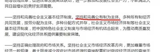 我们发现了,在这篇评论文章中,“社会主义”只出现了5次,而没有一次出现“公有制”,只有1次提到了“国有经济”。