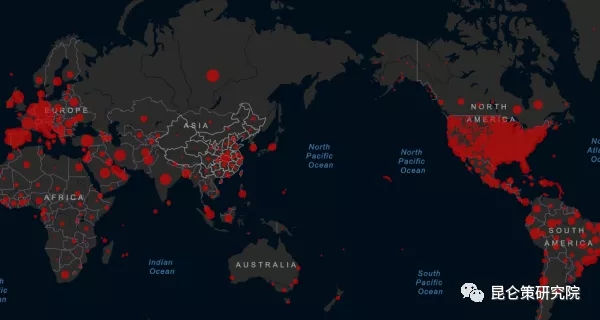 张维为:我们要非常非常淡定。对于西方话语,我还是做了一些研究的。现在西方还有一些方面是为数不多的优势,或者说西方手中剩下为数不多的几张牌,而且这些有时候也是纸老虎,你只要敢于亮剑,就可以把它们的话语漏洞揭露出来。我一直说,我们要实事求是地解构西方话语,实事求是地建构中国话语,建构起来之后,可以把中国故事讲好。比如,这次疫情中,我们普普通通的中国老百姓也在参与建构中国话语。现在绝大部分人都用上智能手机,普通百姓、海外留学生、海外华人,甚至老外,每时每刻都用中国眼光、中国标准看待世界各国的抗疫,并进行比较,大大增强了我们人民的自信。我们发现,每个中国人都懂得人命关天,把人民的生命放在第一位,我们的政策是以人民为中心,这在中国社会不会有任何争议,但西方不是这样的。【红色代表确诊状况,截图来自约翰·霍普金斯大学新冠数据中心】最后,人们就有了一个清楚的比较,我们是以人民为中心,把人民的生命健康放在第一位,所以采取这样一整套的做法,但西方是把经济利益商业利益放在第一位,采取他们那样的做法,结果西方国家的“重灾区”全是经济最发达的版块,这恰恰证明他们的资本利益导向非常短视。比如,纽约就是最严重的地区之一,我粗粗算了一下,如果以最新的统计数字为准,拿中国的重灾区湖北和纽约州的确诊数相比,湖北要比纽约州安全6倍;按疫情的绝对死亡数来看,中国要比美国安全至少20倍。我觉得这背后就是不同体制的较量,同时也可以把它说成很好的中国故事,传播出去。