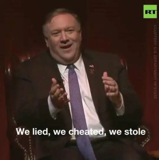 243年后,2019年4月15日,蓬佩奥在美国得克萨斯州A&M大学进行演讲,义正言辞的谈到:我们撒谎、我们欺骗、我们偷窃。这才是美国不断探索进取的荣耀。这几句话引发了现场热烈的鼓掌,聆听者掌声雷动,所有人感动的和王八蛋一样:我为你点赞,你终于说出了我们的心里话!美国以谎言立国,现在走进了一个新时代,我TM的都懒得骗你了。