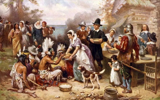 1620年和1621年之交的冬天,最苦难的时候,印第安人给他们送来了生活必需品,还特地派人教他们怎样狩猎、捕鱼和种植玉米、南瓜。在印第安人的帮助下,移民们终于获得了丰收,在欢庆丰收的日子,按照宗教传统习俗,移民规定了感谢上帝的日子,并决定为感谢印第安人的真诚帮助,邀请他们一同庆祝节日。