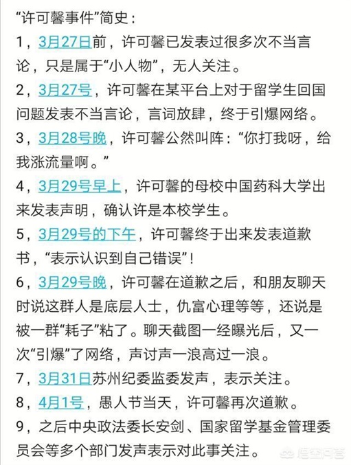 此后,网友们便开始了漫长的打卡,其中有人还把许可馨事件按照时间顺序做了整理。